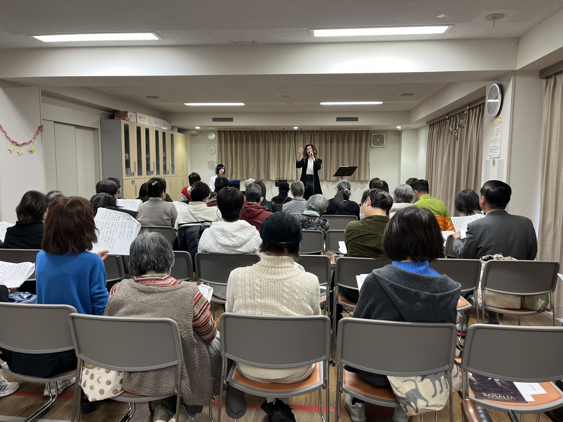 当日は、多くの方に、ご来場いただき、1時間たくさんの歌を、ロザリアさんと皆様で歌っていただきました。