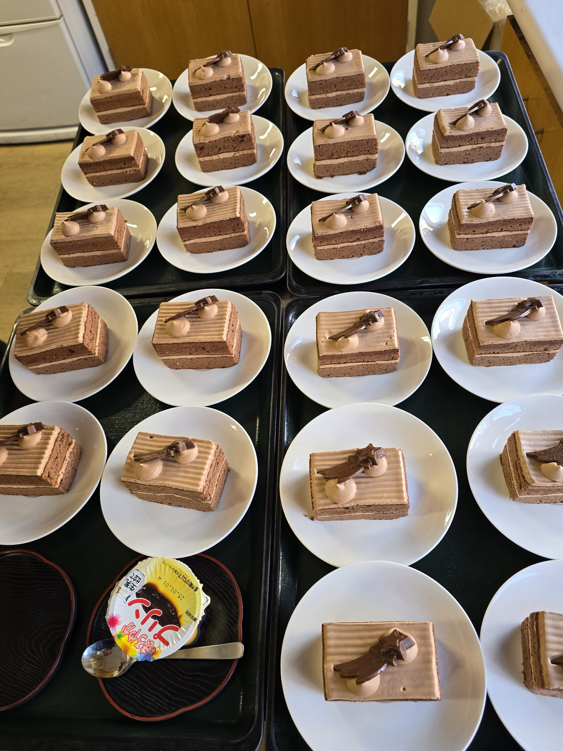 チョコレートケーキです!!チョコレートケーキを朝から楽しみにしてくださっていた方も!!