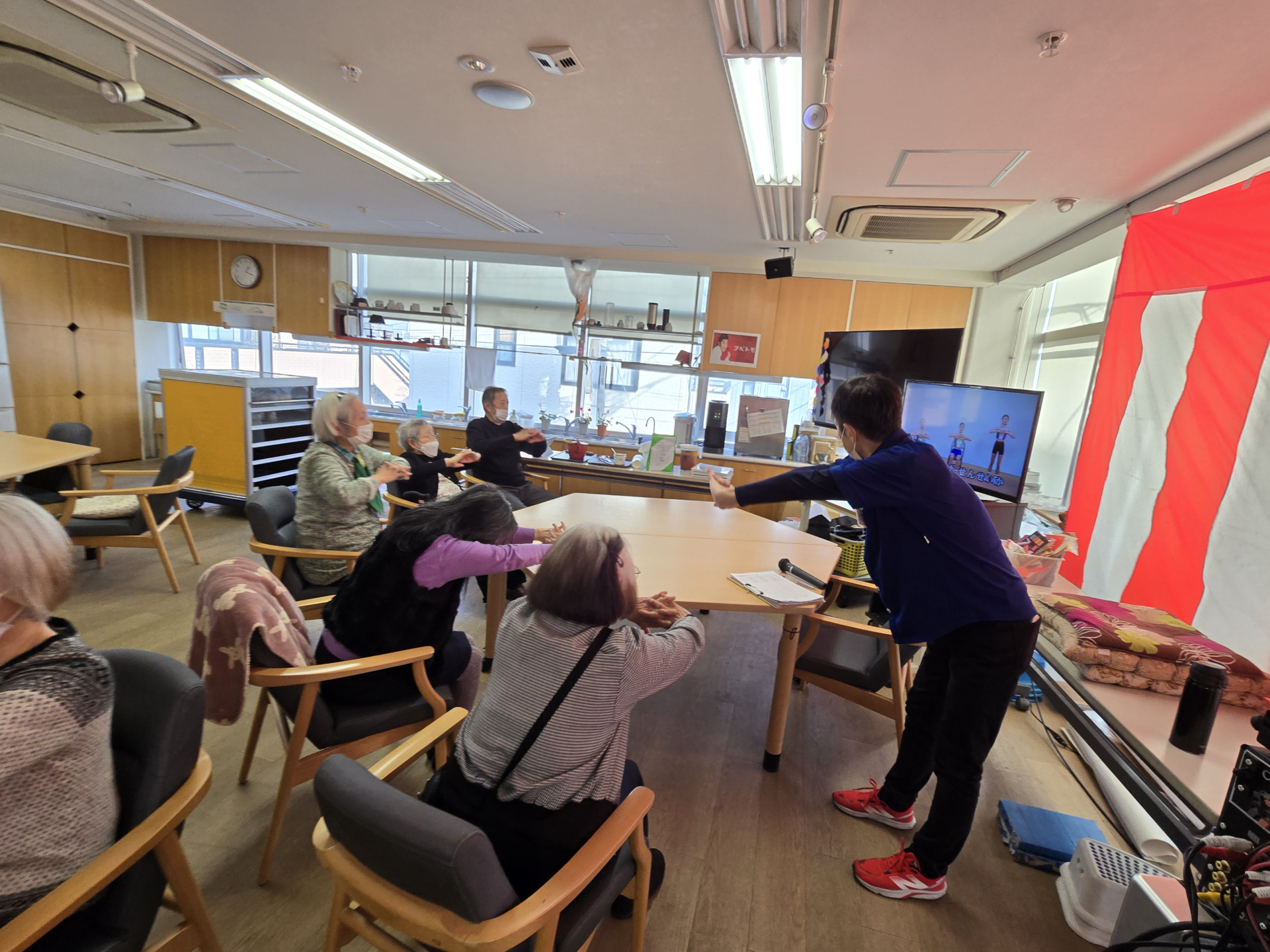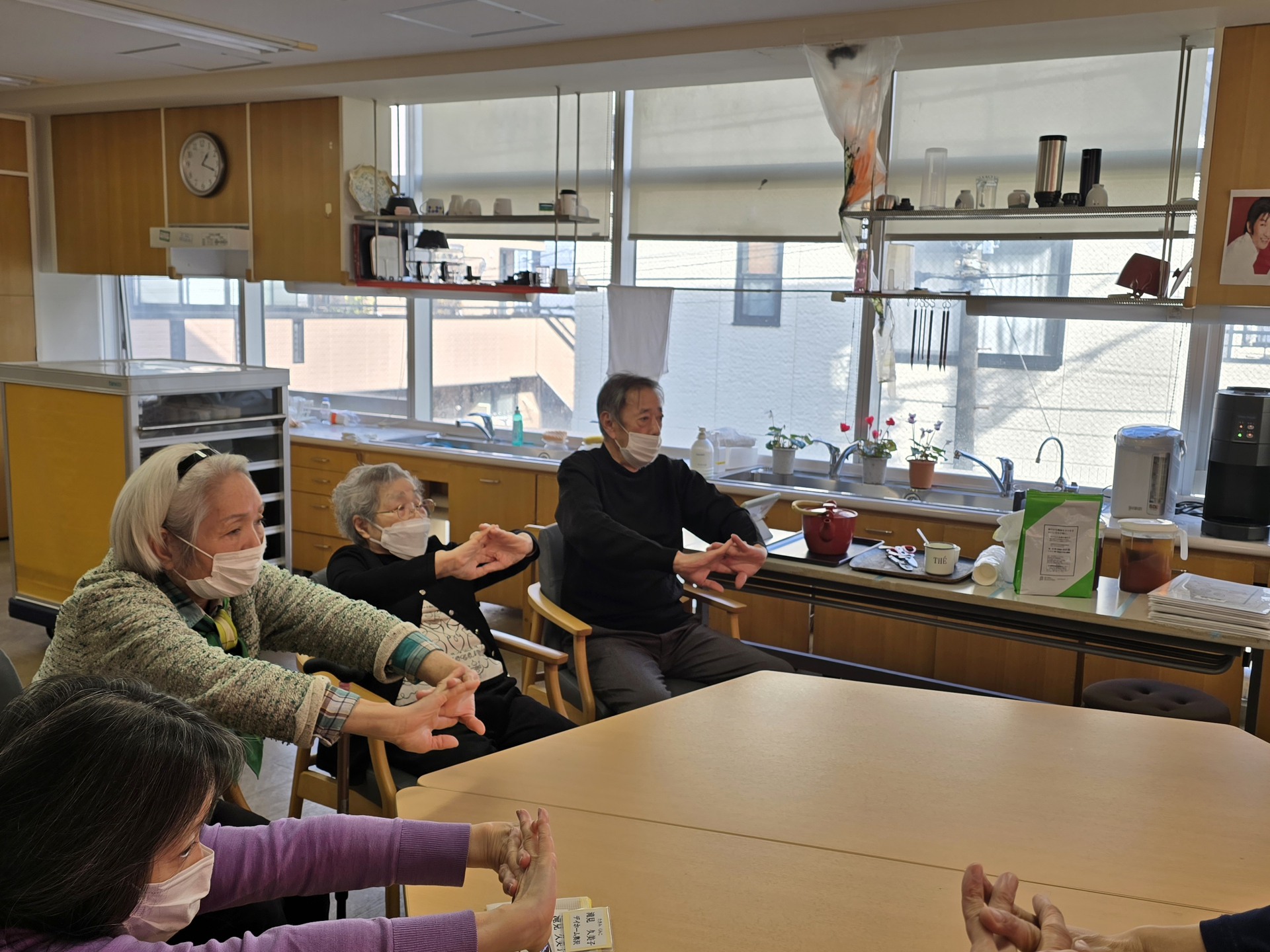 5人1チームで行い、体操の内容も毎回違います!!タオル体操等もあるため、下肢や上腕をしっかり動かすことができます!!