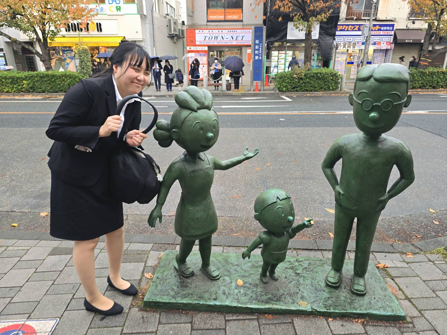 ということで、事例発表終わりにサザエさんの銅像の前で写真を撮りました‼