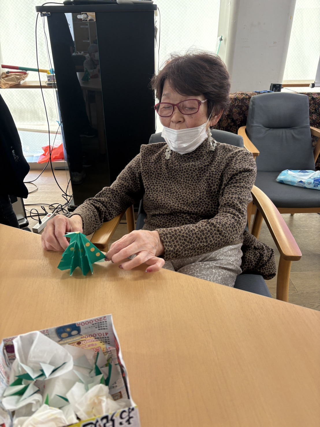 前回のクリスマスツリー飾り付けに続き、折り紙でクリスマスツリーを作りました‼