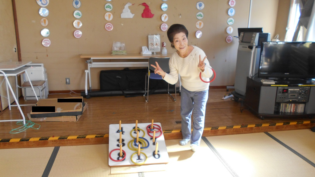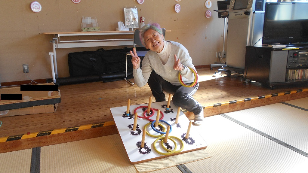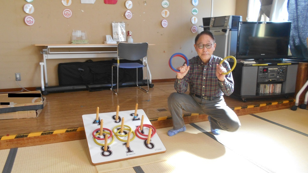 力の入れぐあいで全然違う方向に輪が飛んでしまったりと、輪投げはなかなか奥が深いですよ!