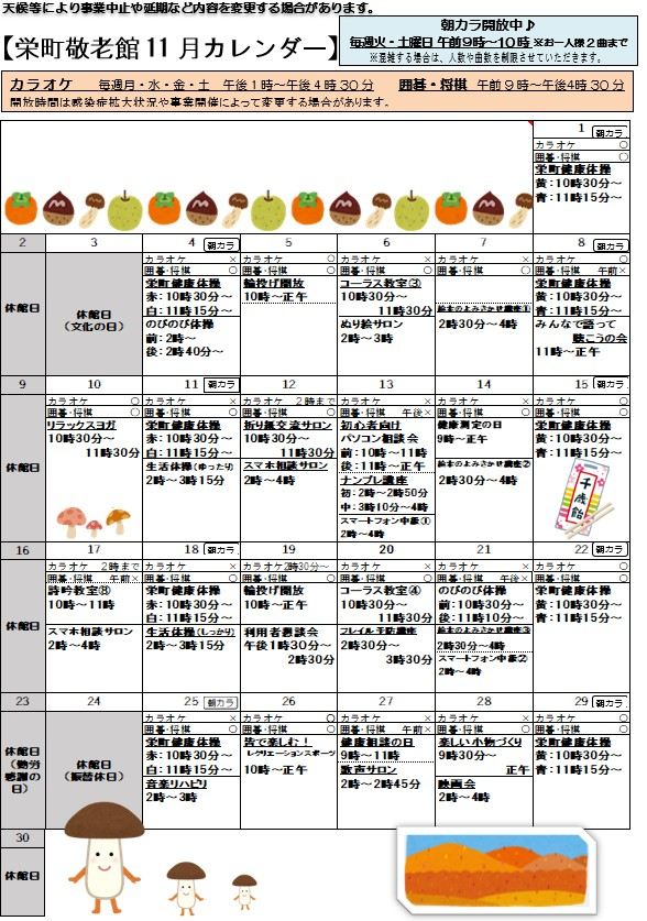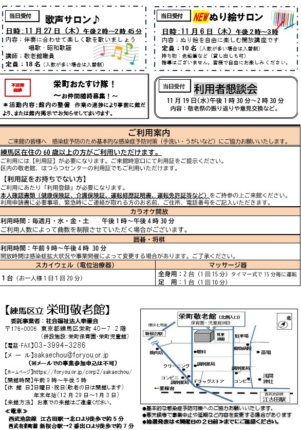 いつも栄町敬老館をご利用いただき、誠にありがとうございます。