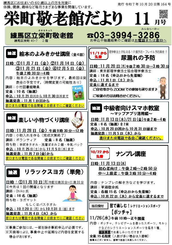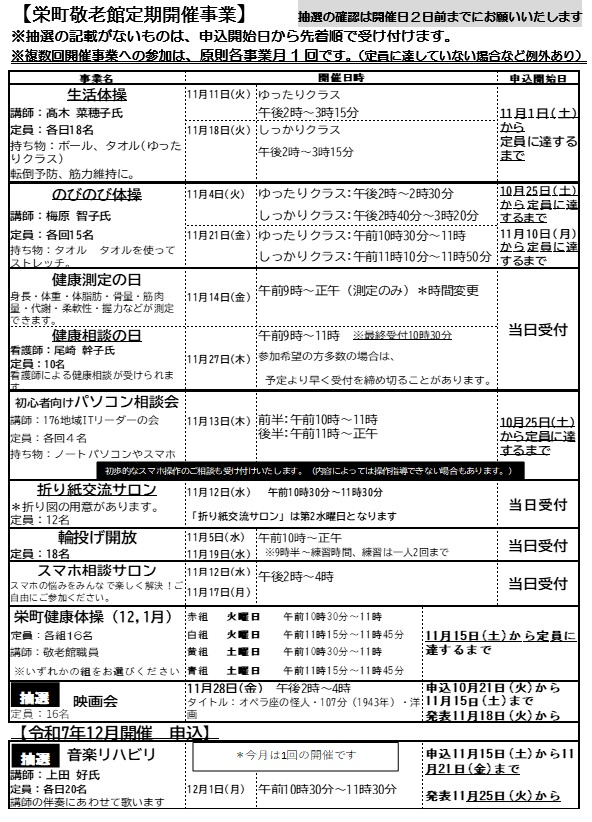 事業に関するお申込みやお問合せは、栄町敬老館までお願いいたします。