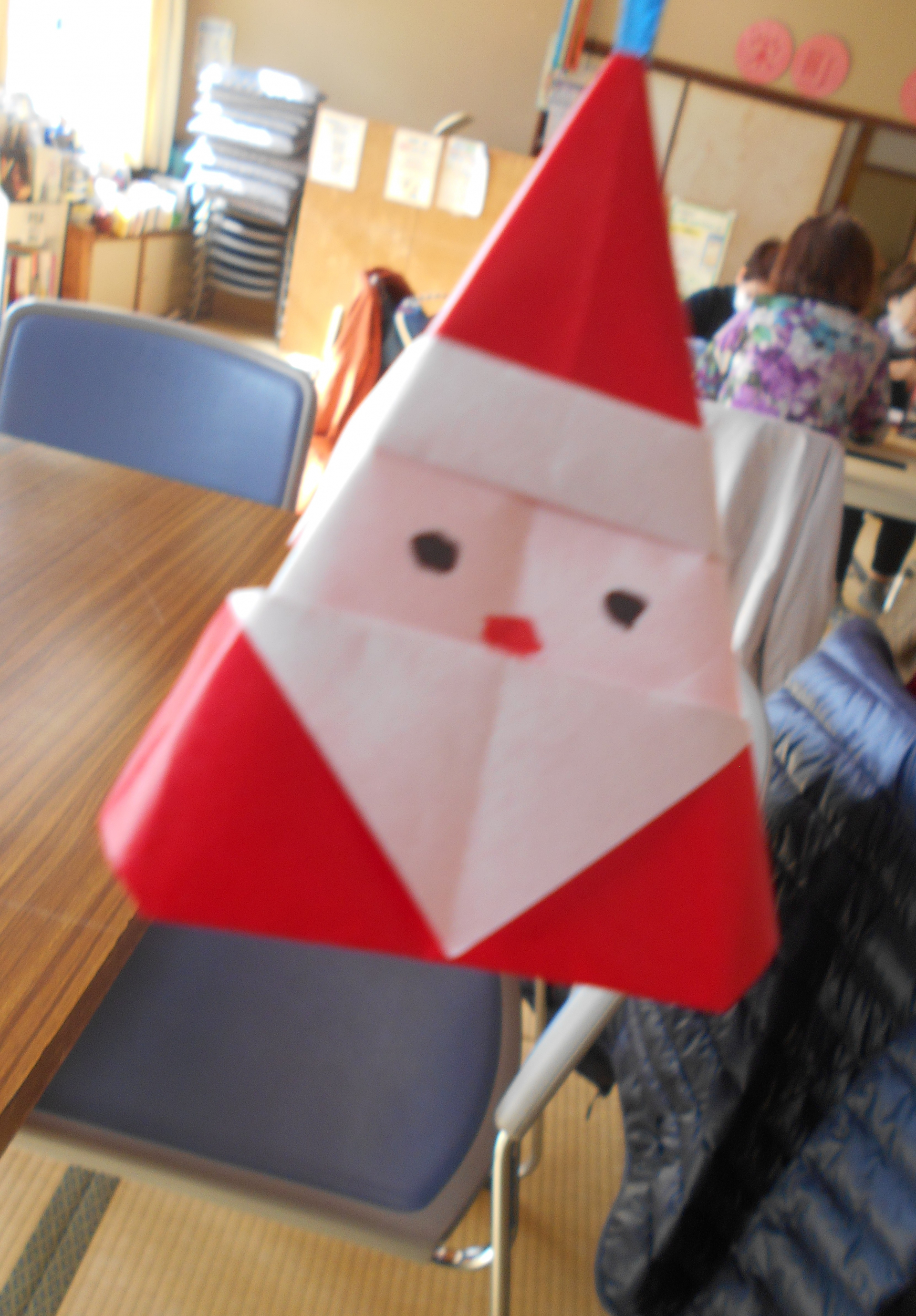 今月の「折り紙サロン」、ご用意した折り図はサンタベル。