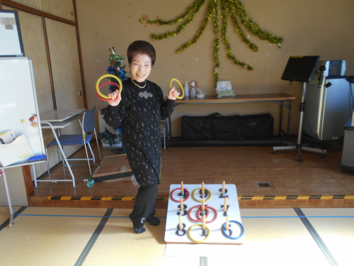 2025.12.17 活動報告 輪投げ開放開催 Tweet シェアする 12/17(水) 輪投げ開放を行いました 高得点者のお写真です。 お一人づつ紹介します 担当古田 前の記事 2025.12.17 活動報告 輪投げ開放 高得点者続き1 次の記事 2025.12.17 活動報告 館だより折りボランティア 一覧へ戻る