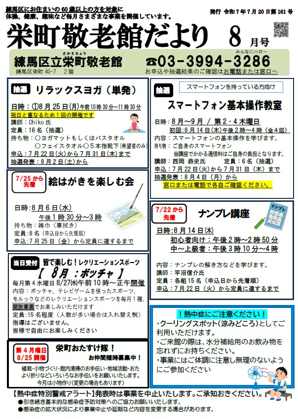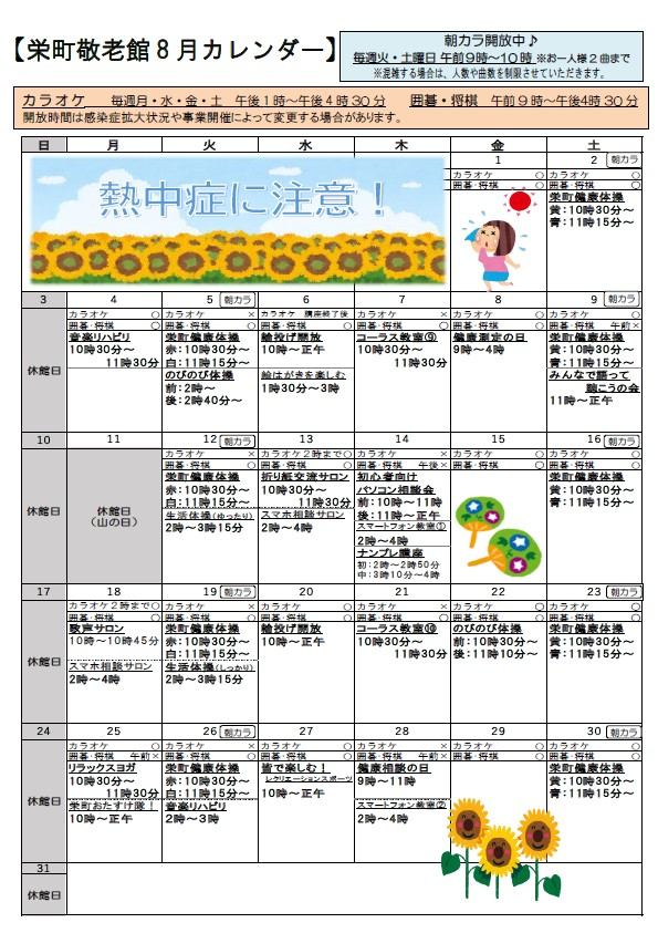 栄町敬老館だより8月号を発行いたしました