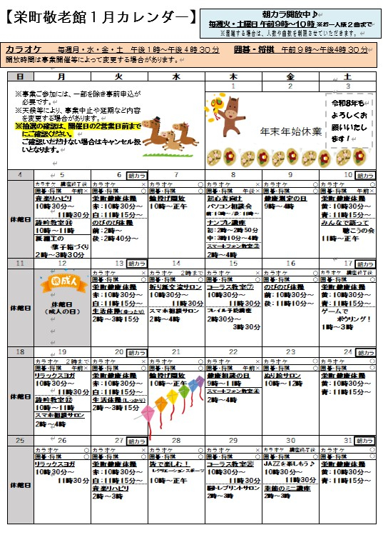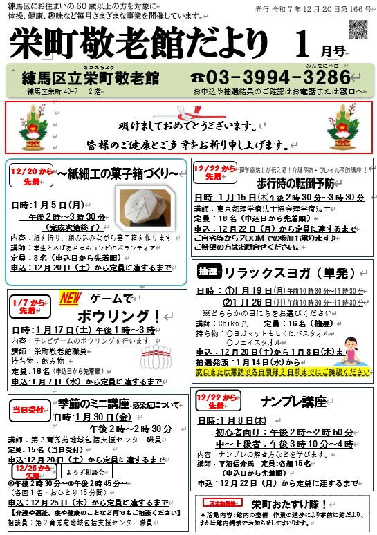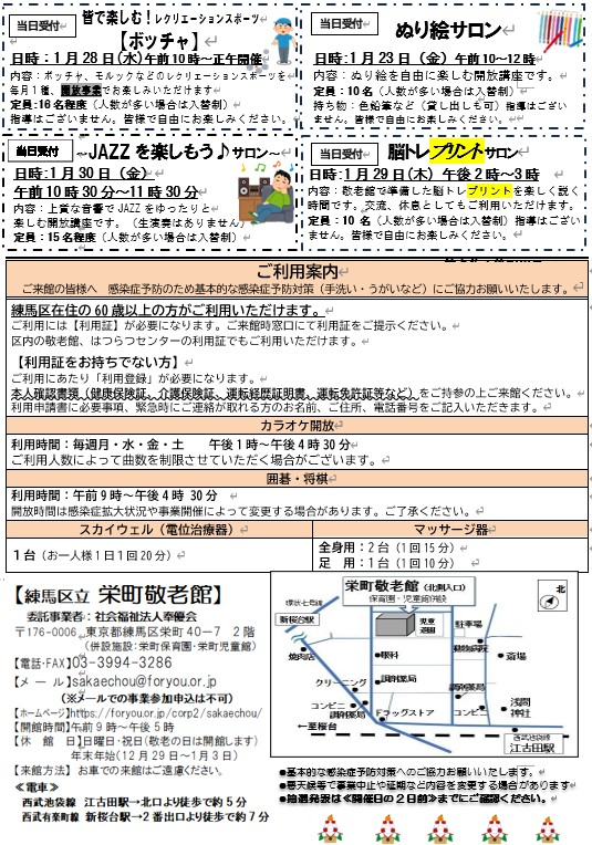 栄町敬老館だより1月号を発行いたしました
