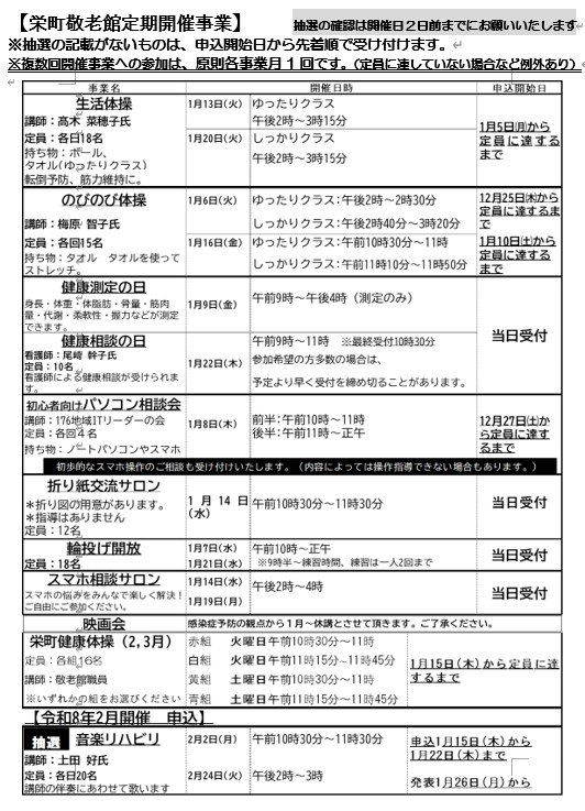 いつも栄町敬老館をご利用いただき、誠にありがとうございます。
