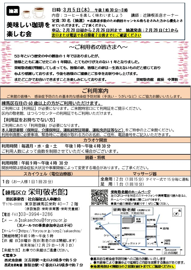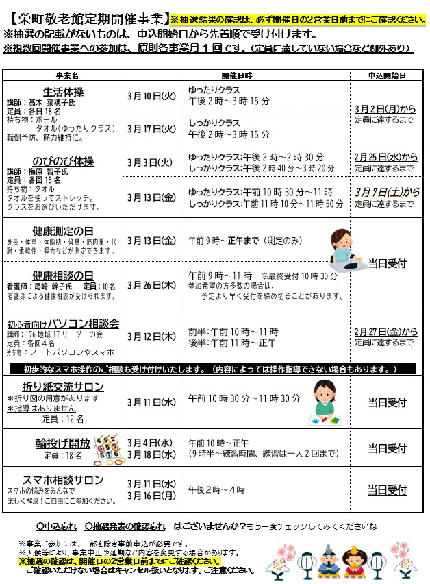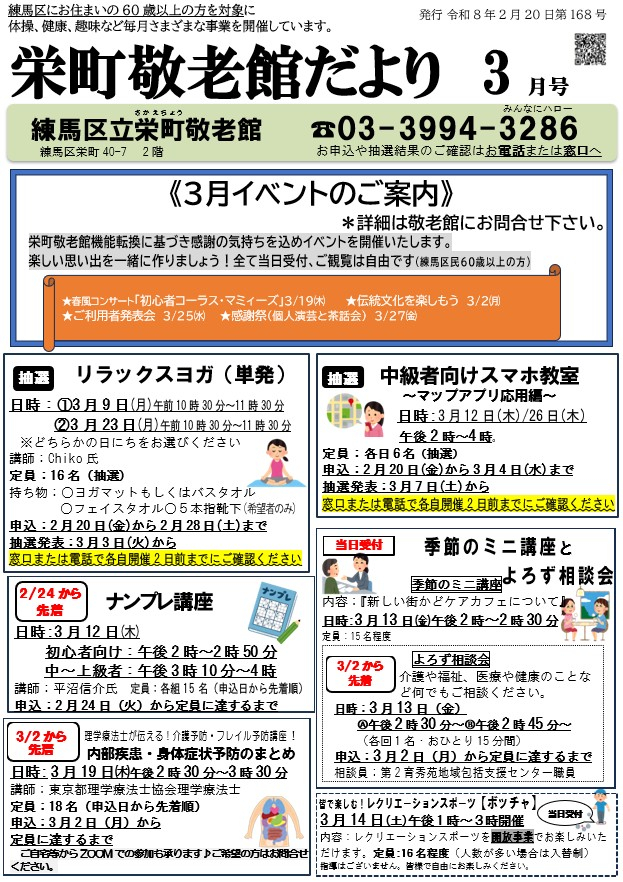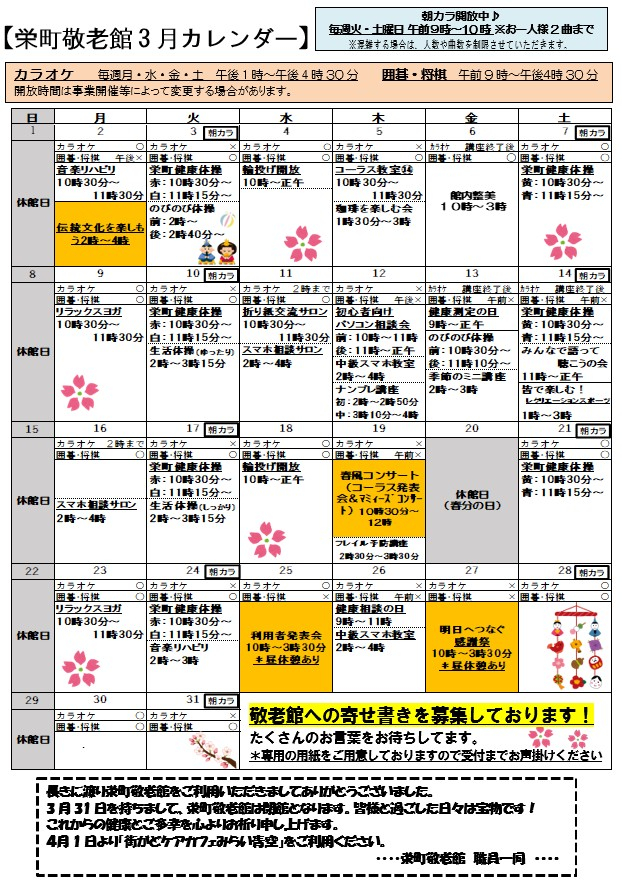 栄町敬老館だより3月号を発行いたしました