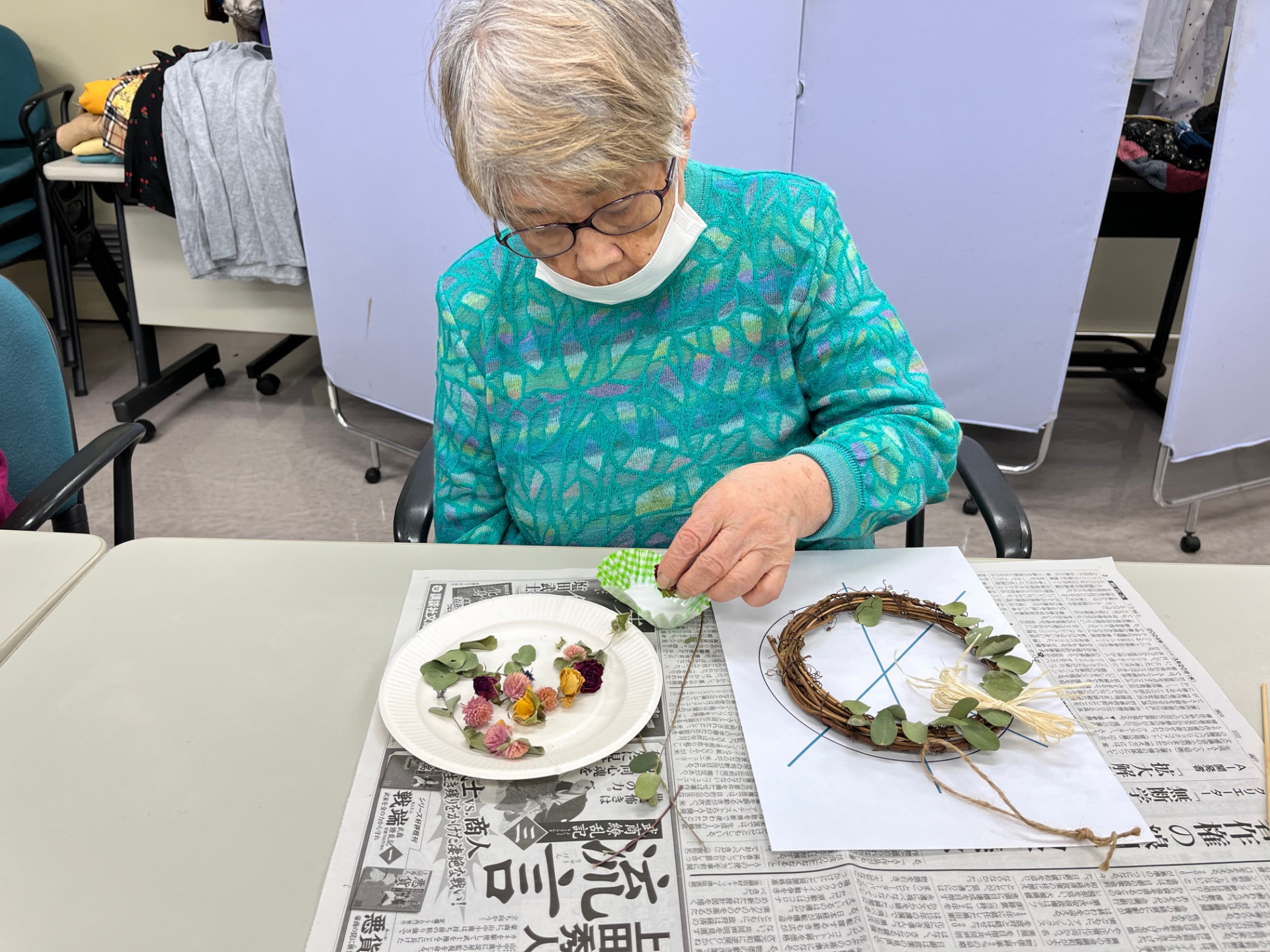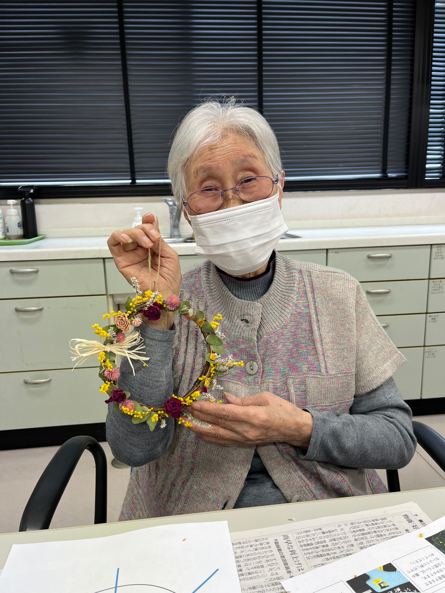 皆さん同じ材料でしたが作る人それぞれで作品が違い素敵なリースが完成しました