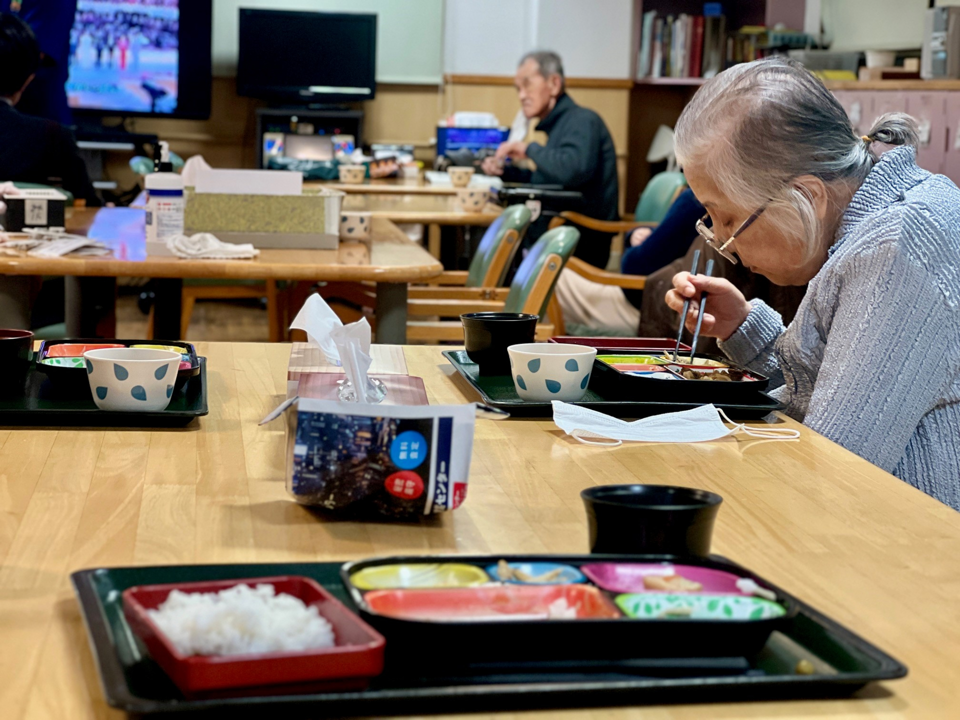 夕食を希望される方にはお持帰り用のお弁当セかンターで召し上がって頂くの2パターン。