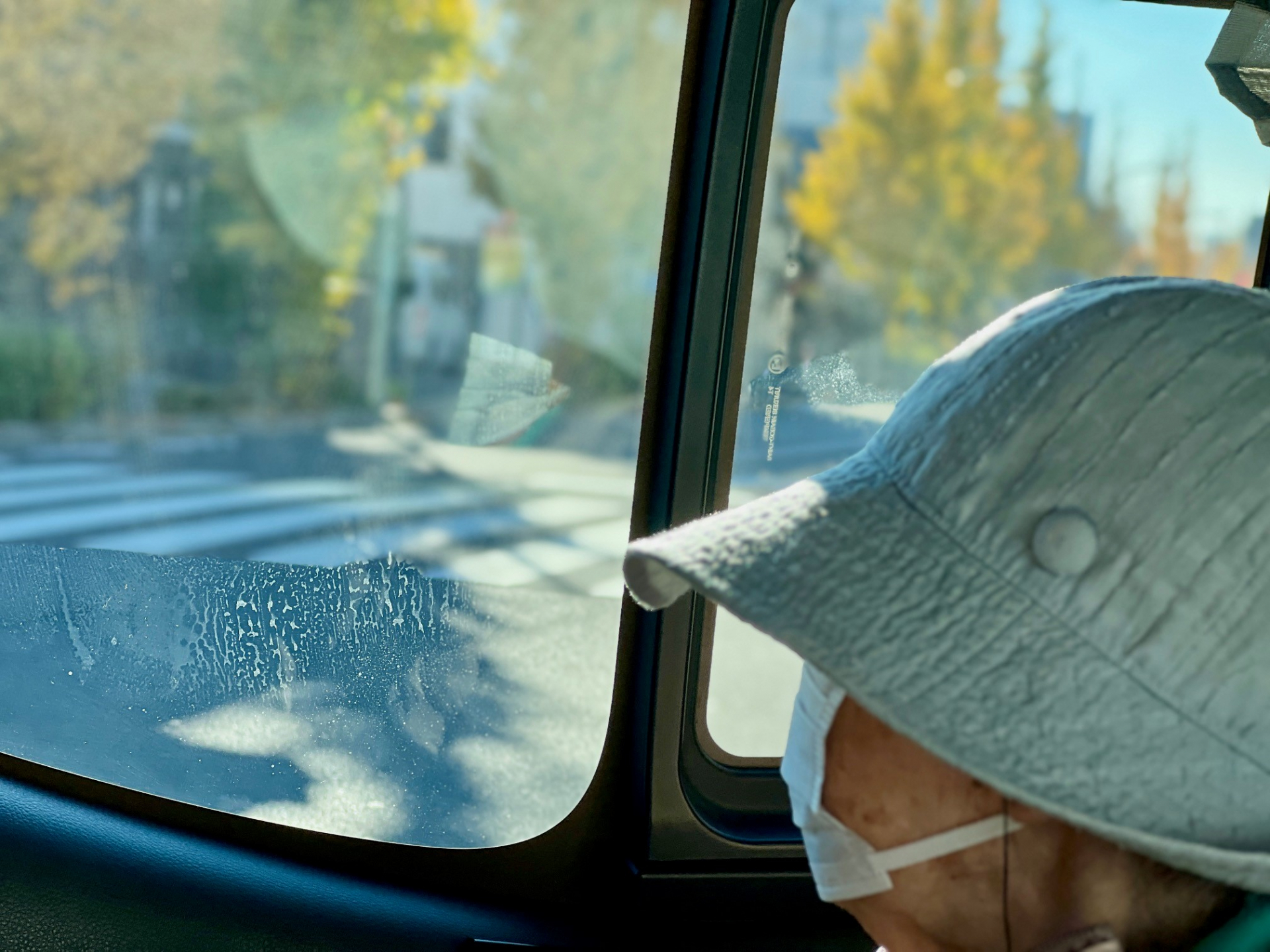 窓の外を見ると両側に黄色や赤の葉っぱが広がっていて、本当に素敵です。