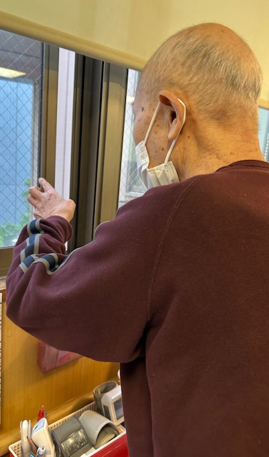 窓閉めの際には、職員と外を眺めながら「良いお天気だ」とにっこり笑顔のAさま。