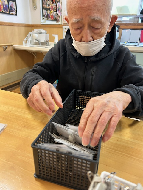 Aさまはお手伝いをされながら、職員とのコミュニケーションも楽しまれているご様子でした。