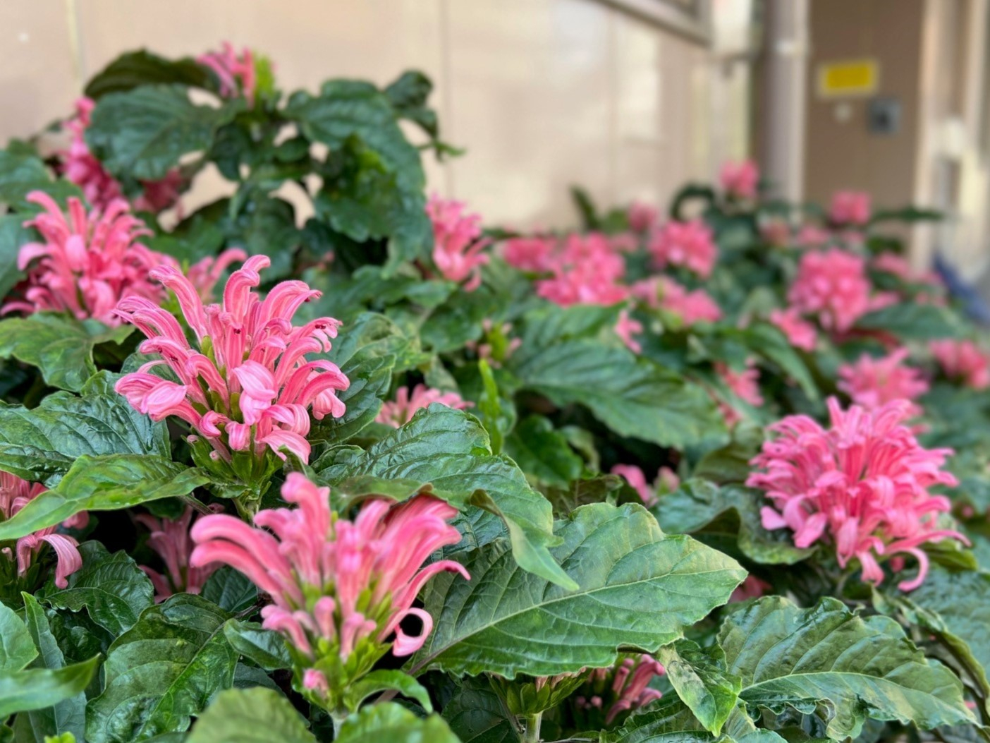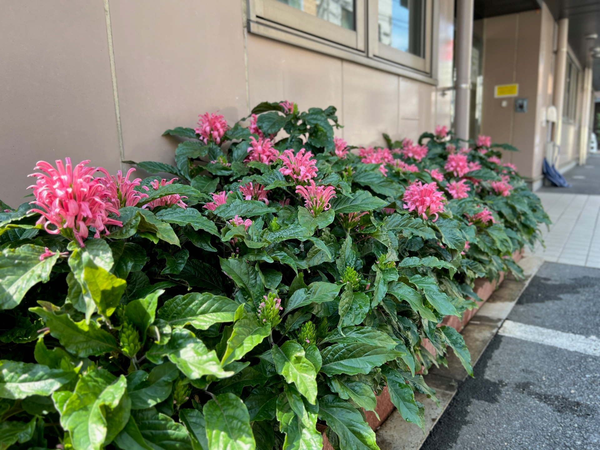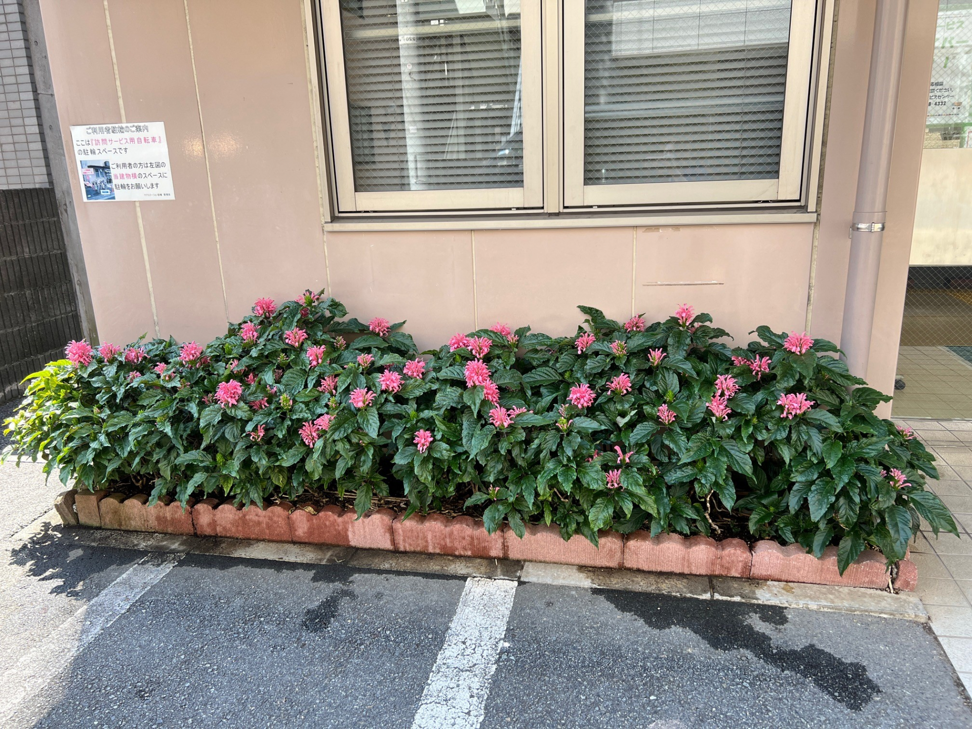 実は、笹幡デイサービスの玄関前でも今、**ピンク色の可愛らしい「ハワイサンゴ」**が満開なんです!