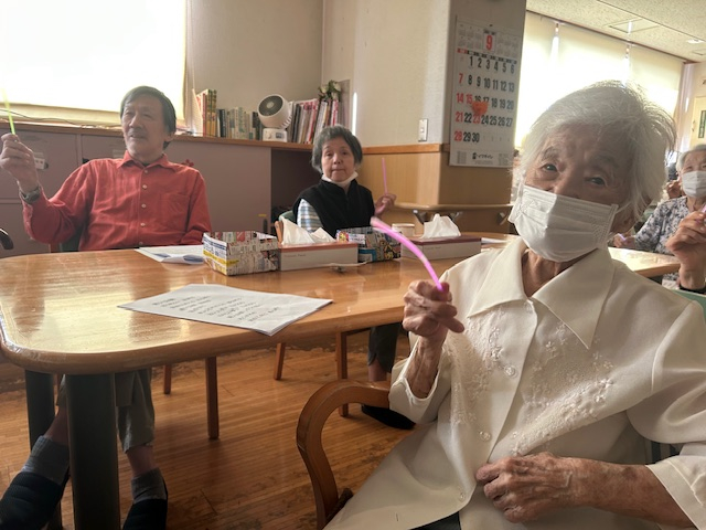 サイリウムを持ちながら、ご利用者さまも一緒に口ずさみ、会場全体が音楽に包まれたようなひととき。