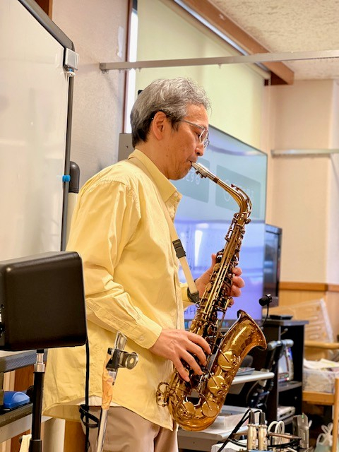 今回のレクリエーションではボランティアの古屋さんがサックスを演奏してくださいました。
