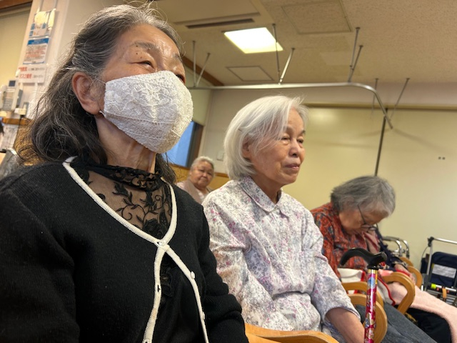 途中、歌いながら涙ぐむご利用者さまも。素敵な音色が心に響き、昔を思い出してしまったとのことでした。
