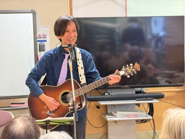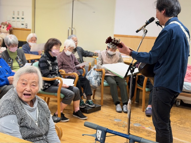 先日、甘利さんのギター演奏者の方をお迎えし、皆様と一緒に歌う 「ギター歌会」 を行いました。