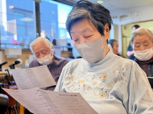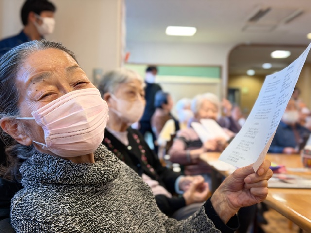 「昔よく歌ったなあ」と小さなつぶやきが聞こえ、それに合わせて笑顔がふわっと広がっていきました。
