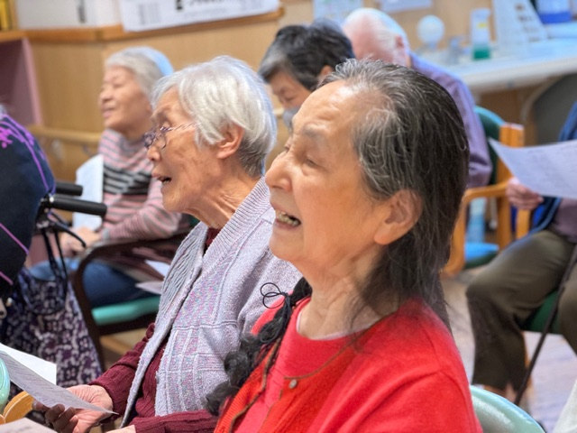 歌い始めると、自然と目を閉じてメロディに集中される方、リズムに合わせて体を揺らす方など、それぞれが自分のペースで音楽を楽しんでおられました。