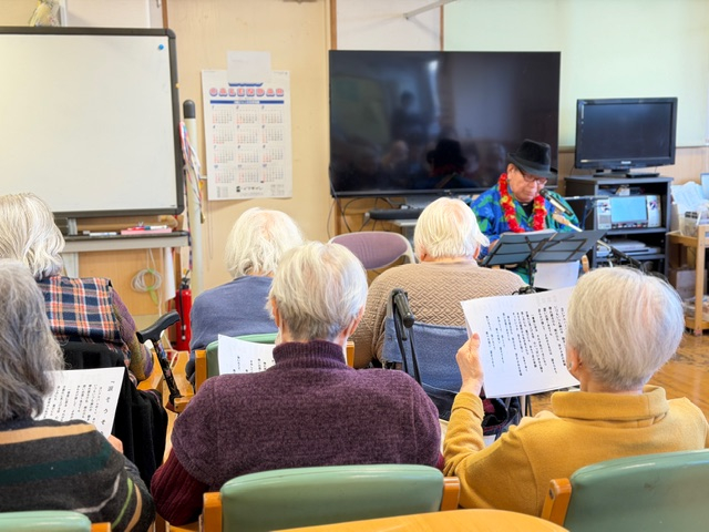 優しいウクレレの音色に合わせて歌声が広がると、皆様の表情もふんわりと明るくなっていきます。