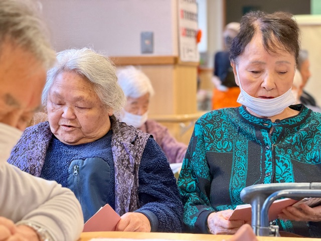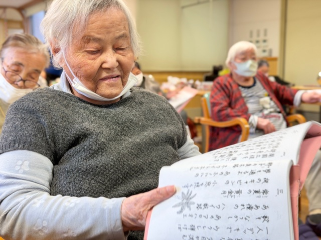 利用者様の表情がぱっと明るくなり、ページを追いながら、一緒に口ずさむ姿がとても愛らしく、まるで「思い出の合唱会」が始まったようでした (〃^▽^〃)