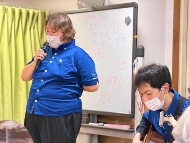 最後の曲になると、自然とフロア全体がひとつになったかのように、職員も利用者様も、みんなが心から楽しんでいるのが伝わってきました。