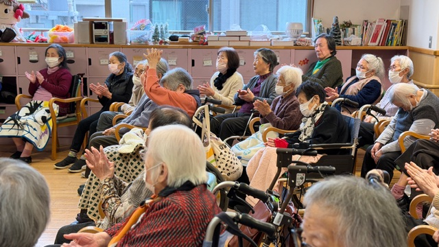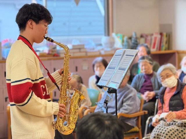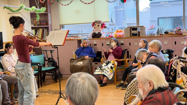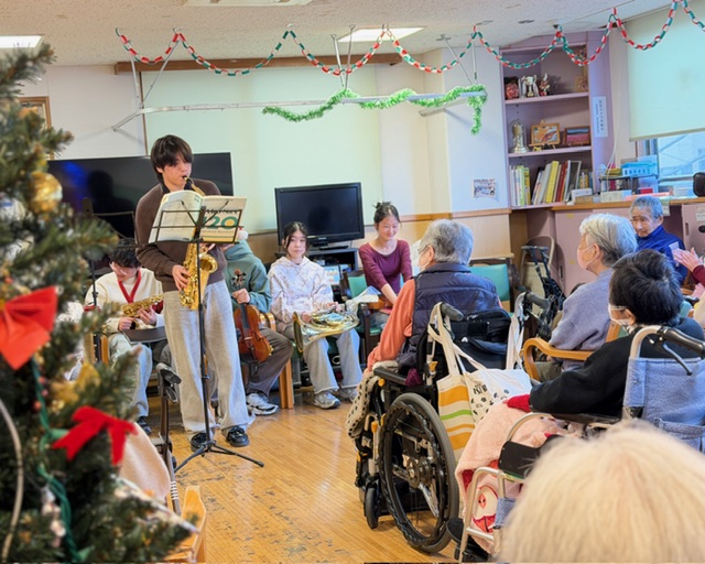 先週の土曜日、笹幡デイサービスに国際音楽学校 「エバーグリーングループ」 の生徒の皆さんが来所され、クリスマスコンサートを開催してくださいました。