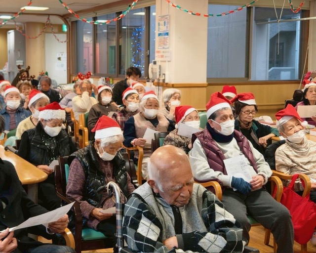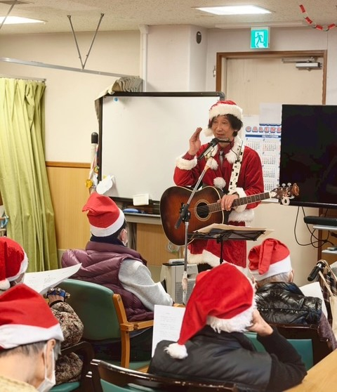 本日、12月24日(水)、クリスマスイブのデイサービスでは甘利さんによるギター演奏会を開催しました。
