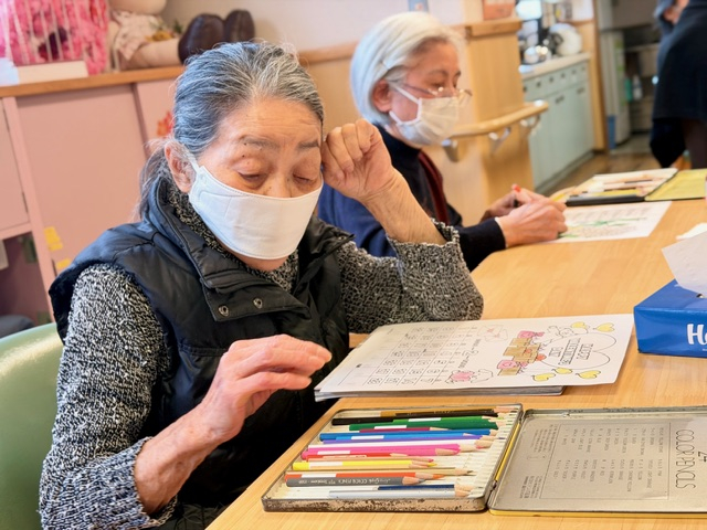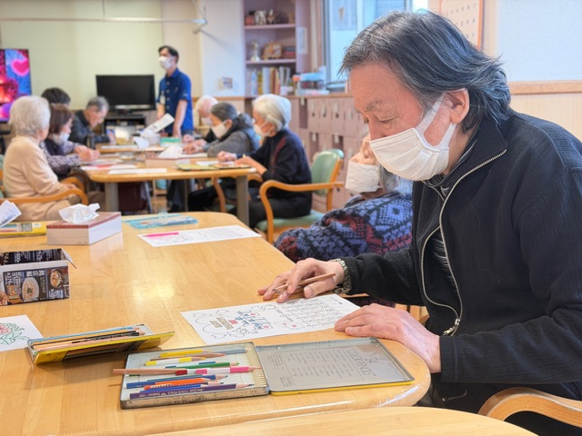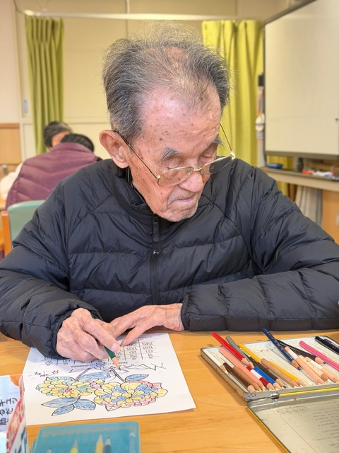 どの色を選ぶかを考えながら、自然と集中する時間となり、男性の利用者様も含め、皆さま最後まで意欲的に取り組まれていました。