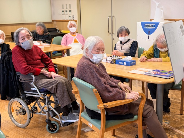 言葉として口に出さなくても、絵を見て、音を聞き、心の中で季節を思い浮かべること自体が、大切な認知への刺激となっています。