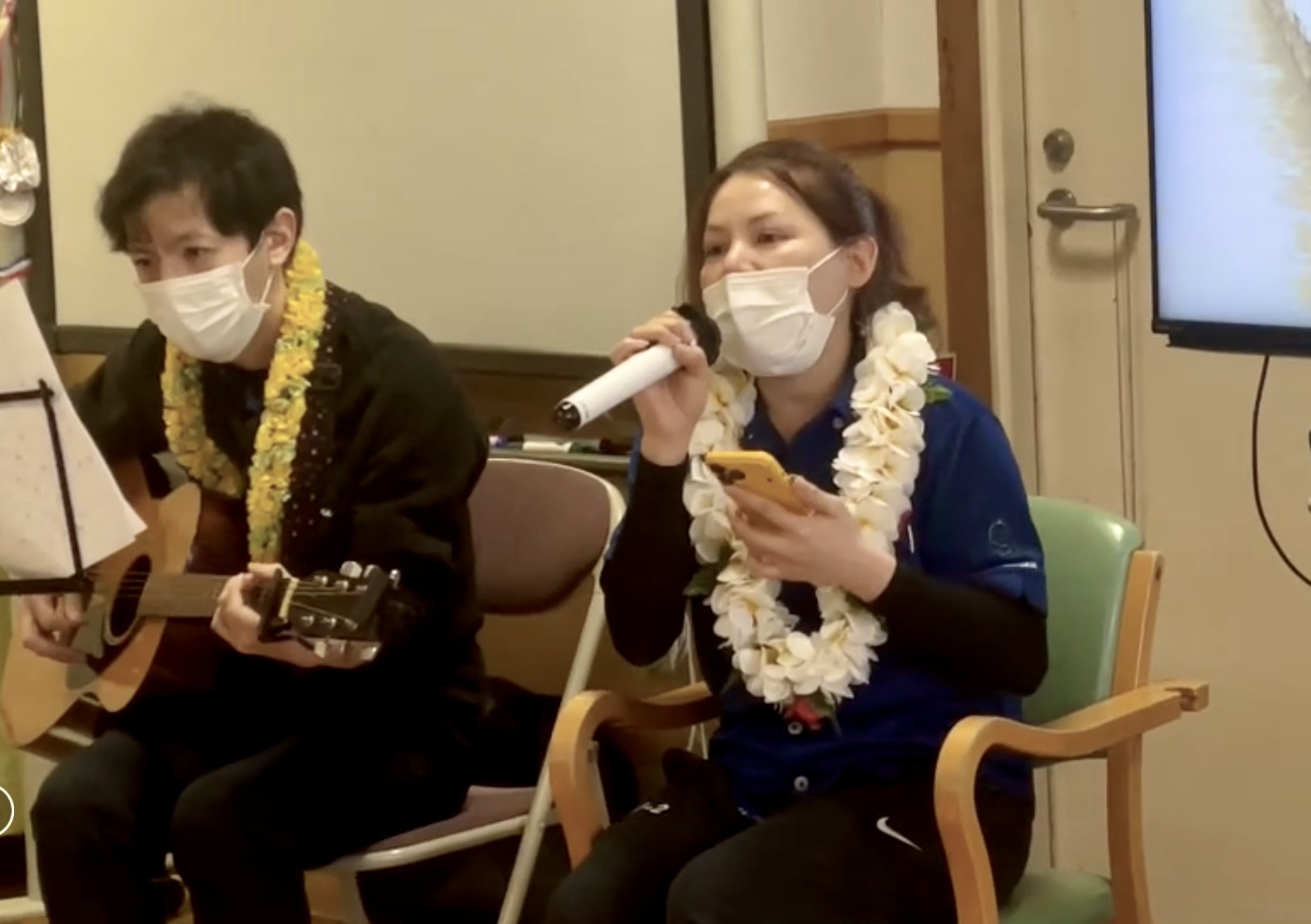 職員と男性スタッフによる生演奏。