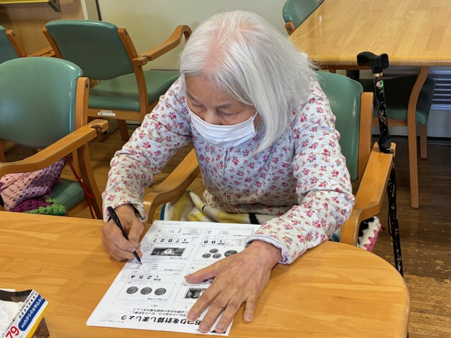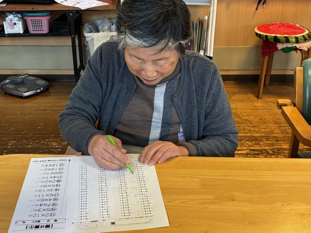 笹幡デイサービスでは計算問題や間違い探しなどの脳トレーニングを実施してます。