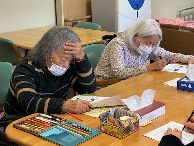 笹幡デイサービスでは認知機能を鍛える脳トレレクリエーションを多数ご用意しております。