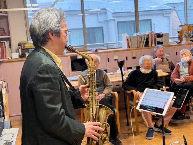 サックスの温かく伸びやかな音色が響き渡ると、皆さまの表情がすっとやわらぎ、