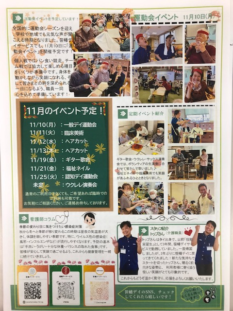 2025.11.15 【笹幡認知デイ】全体会議 認知症デイサービス 2025.11.15 【笹幡認知デイ】ギター演奏会 認知症デイサービス 2025.11.15 【笹幡認知デイ】食欲の秋イベント 認知症デイサービス 2025.11.13 【笹幡認知デイ】働き者のT様日記 認知症デイサービス 2025.11.12 【笹幡認知デイ】11月も元気に乗り越えよう! 認知症デイサービス 2025.11.11 【笹幡認知デイ】昭和の名曲に合わせてダンス体操 認知症デイサービス 2025.11.08 【笹幡認知デイ】将棋教室@ 認知症デイサービス 2025.11.08 【笹幡認知デイ】秋の飾り準備 認知症デイサービス 2025.11.07 【笹幡認知デイ】秋の歌@ 認知症デイサービス 2025.11.07 【笹幡認知デイ】インフルエンザ予防対策@ 認知症デイサービス 2025.11.06 【笹幡認知デイ】ハンドメイド@(機能訓練) 認知症デイサービス 2025.11.05 【笹幡認知デイ】朝の体操@ 認知症デイサービス 2025.11.04 【笹幡認知デイ】嬉しい将棋対局@ 認知症デイサービス 2025.11.04 【笹幡認知知デイ】お久しぶりです(#^^#) 認知症デイサービス 2025.11.03 【笹幡認知デイ】イベントの準備 認知症デイサービス 1 2 3 4 5 6 … 38