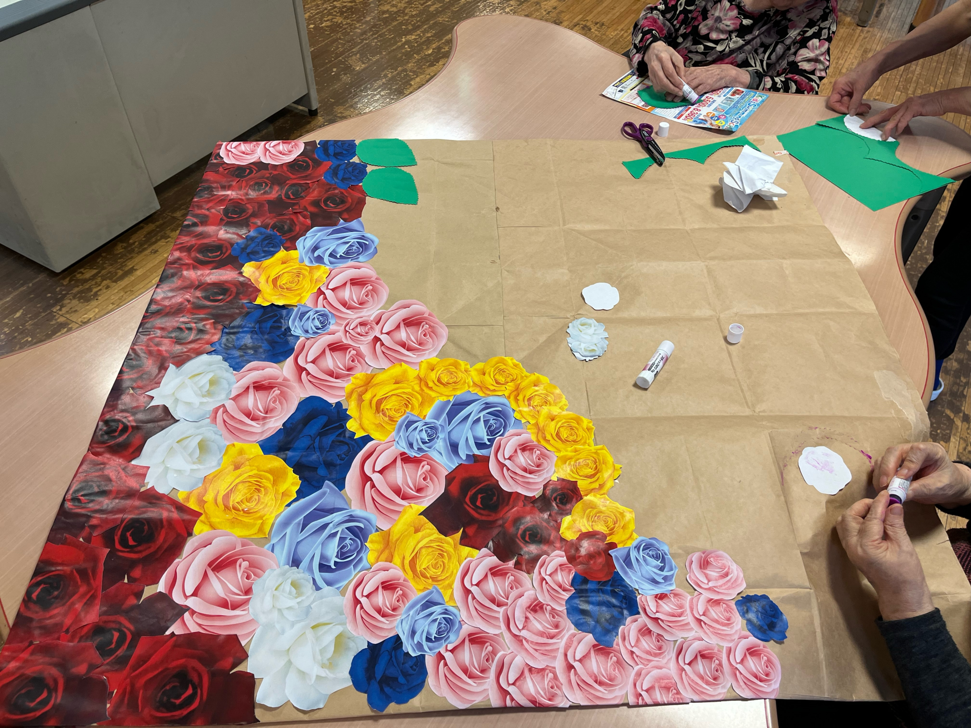 一つ一つを丁寧に張り付けながら職員とお話をされ過ごされました!