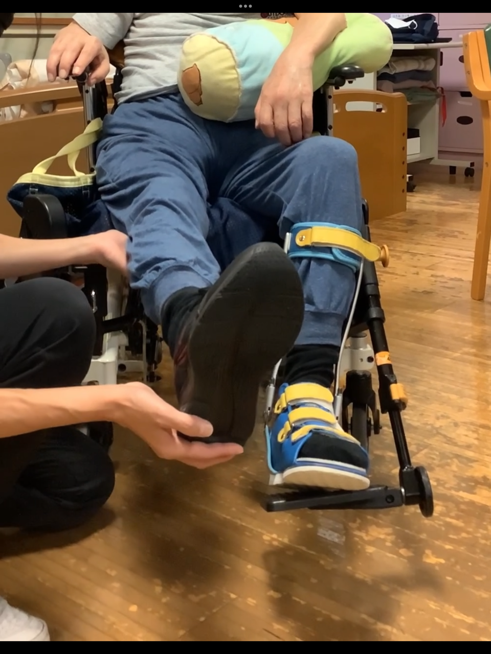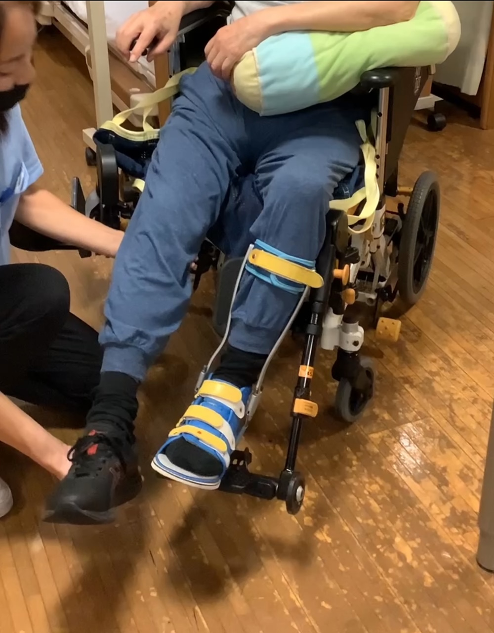 この日のF様は腕と足の運動を職員と一緒に頑張っていました