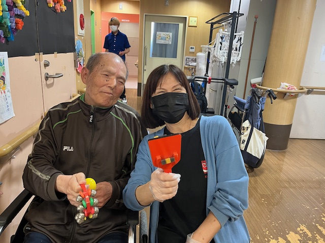 マラカスや鈴をもってリズムに合わせて振って演奏会を楽しまれておりました