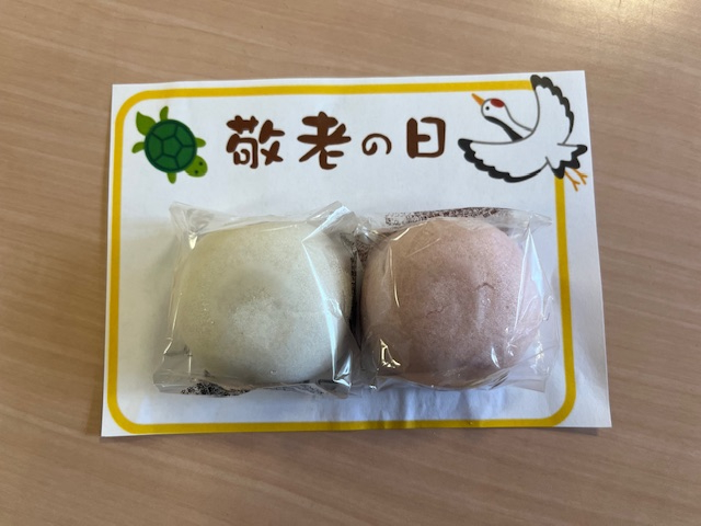 敬老祭メインのエイサーの後はおやつに紅白饅頭をお出ししました