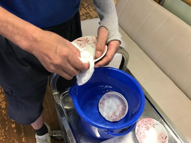 食器を拭く動作、洗濯を干す動作を一緒に行っていただきました。