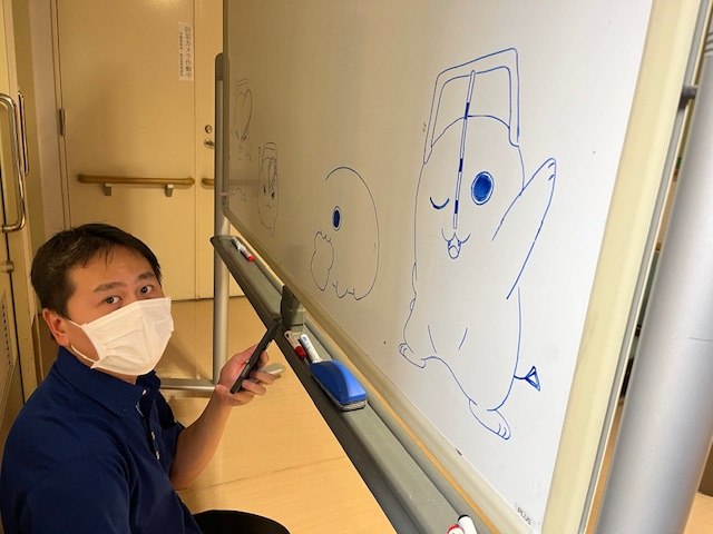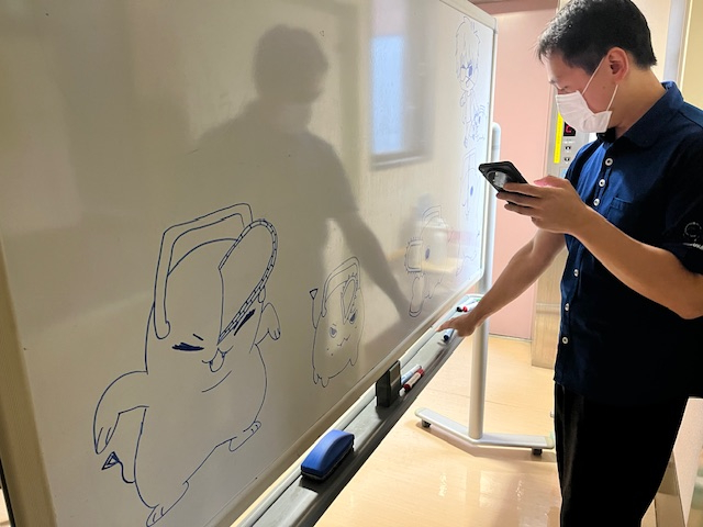 他の作業を済ませている間に表面が完成していて奉優会のオリジナルマスコットも書いてくれました