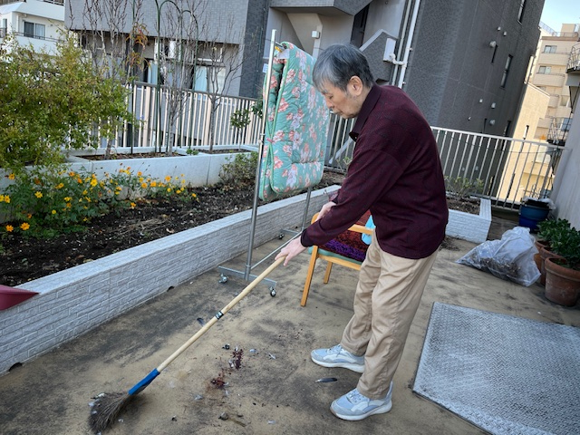 黙々と掃除してくださり30分ほどでおわって、大掃除も兼ねてフロアのお布団も干してきました