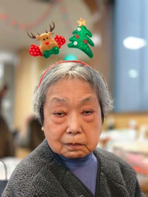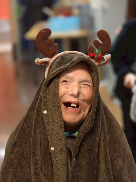 利用者さんもサンタの帽子をかぶってクリスマス気分です