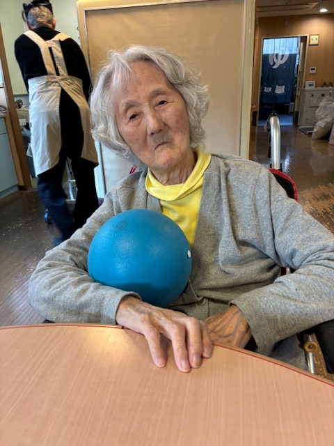 ボール体操と軽い下肢運動を組み合わせ、無理のない範囲で身体を動かしました。