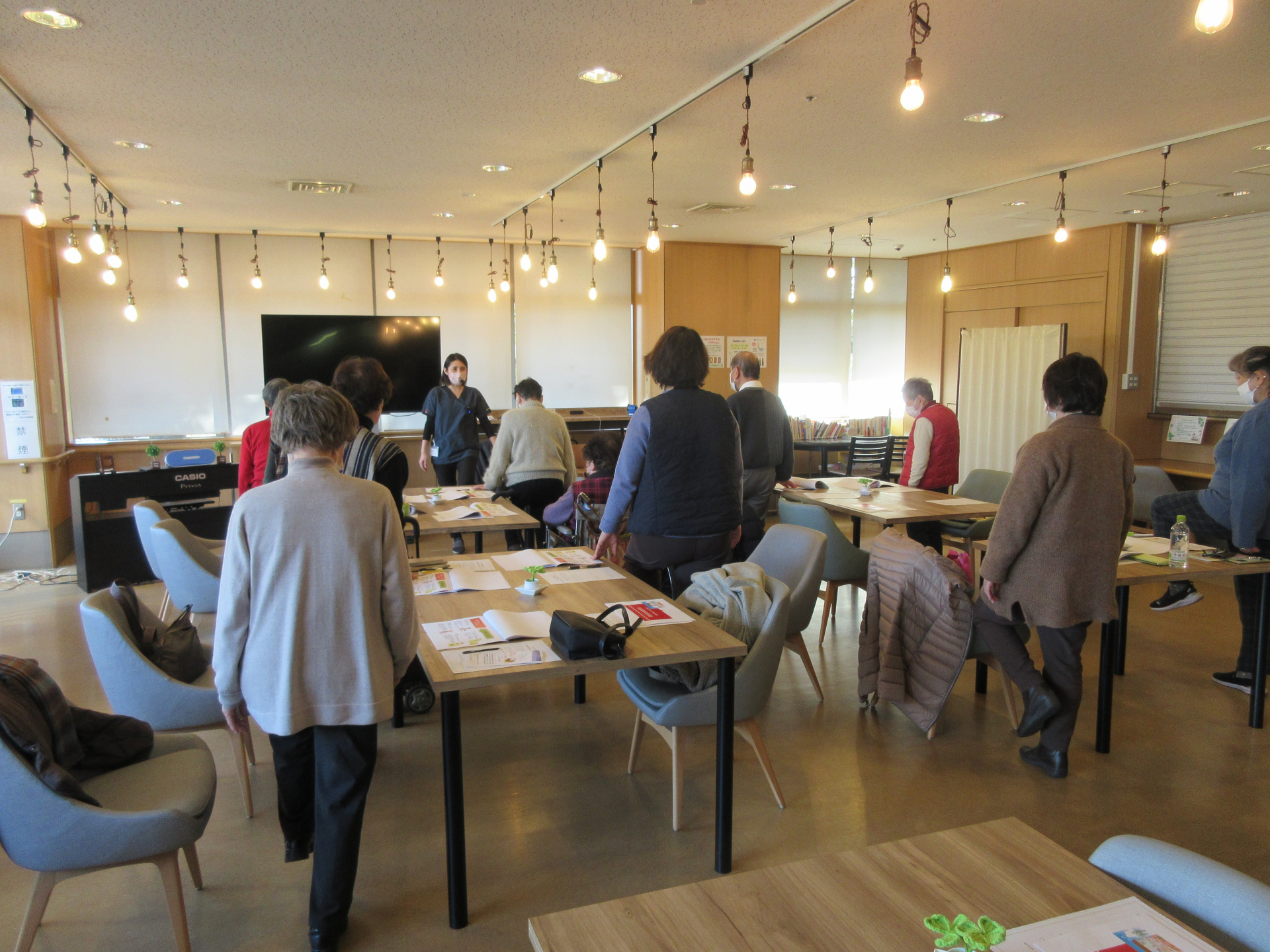 理学療法士が講師となり介護者教室を開催しました。高齢者の転倒は、骨折や寝たきりの原因となります。 転倒の原因やリスクを学び、具体的な運動を紹介しました!