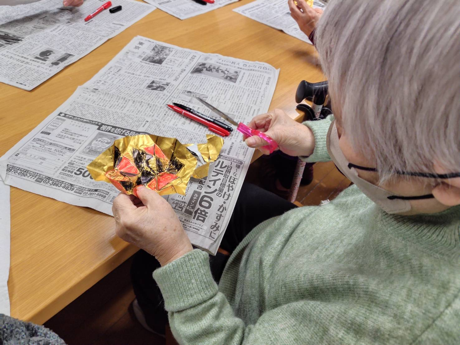 今回はそれを折り紙で行い、立体的になった部分に模様を付けました!