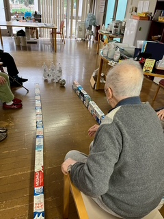 ある日の昼下がり、ふれあいクラブとほのぼのクラブ合同で、ボーリング大会が行われました。